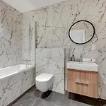 Lion Apartments - Gdynia City Center Bank Polski lägenhet har 1 badrum med badkar och dusch.